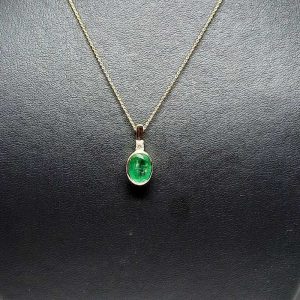 Yellow Gold Natural Emerald and Diamond Necklace Pendant with Chain