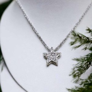 18kt White Gold Diamond Set Star Shaped Pendant and chain